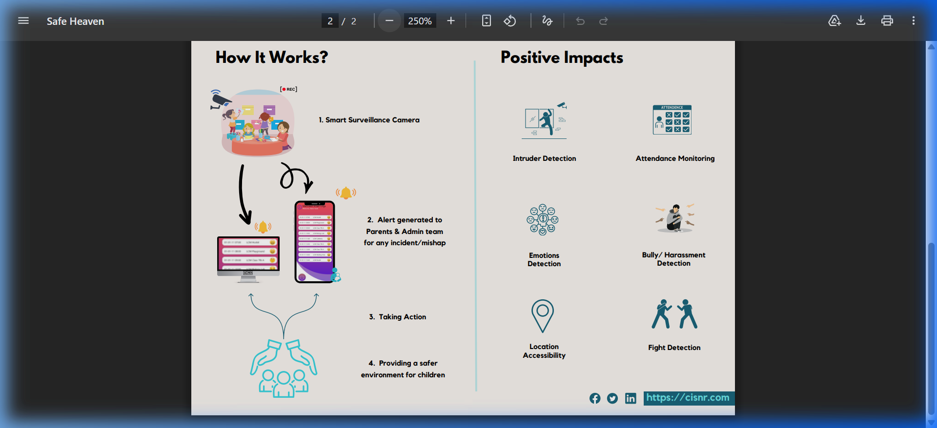About: In a world where every child's safety is the chapter we can't afford to leave unguarded, Safe Heaven writes a tale of trust. Imagine a sanctuary where advanced AI surveillance harmonizes with a tap on your screen, transforming care into real-time vigilance. It's the silent sentinel in every corner, a comforting whisper to parents and guardians: "All is well." With Safe Heaven, peace of mind is not just a feeling—it's a scene in the everyday story of our children's secure future.